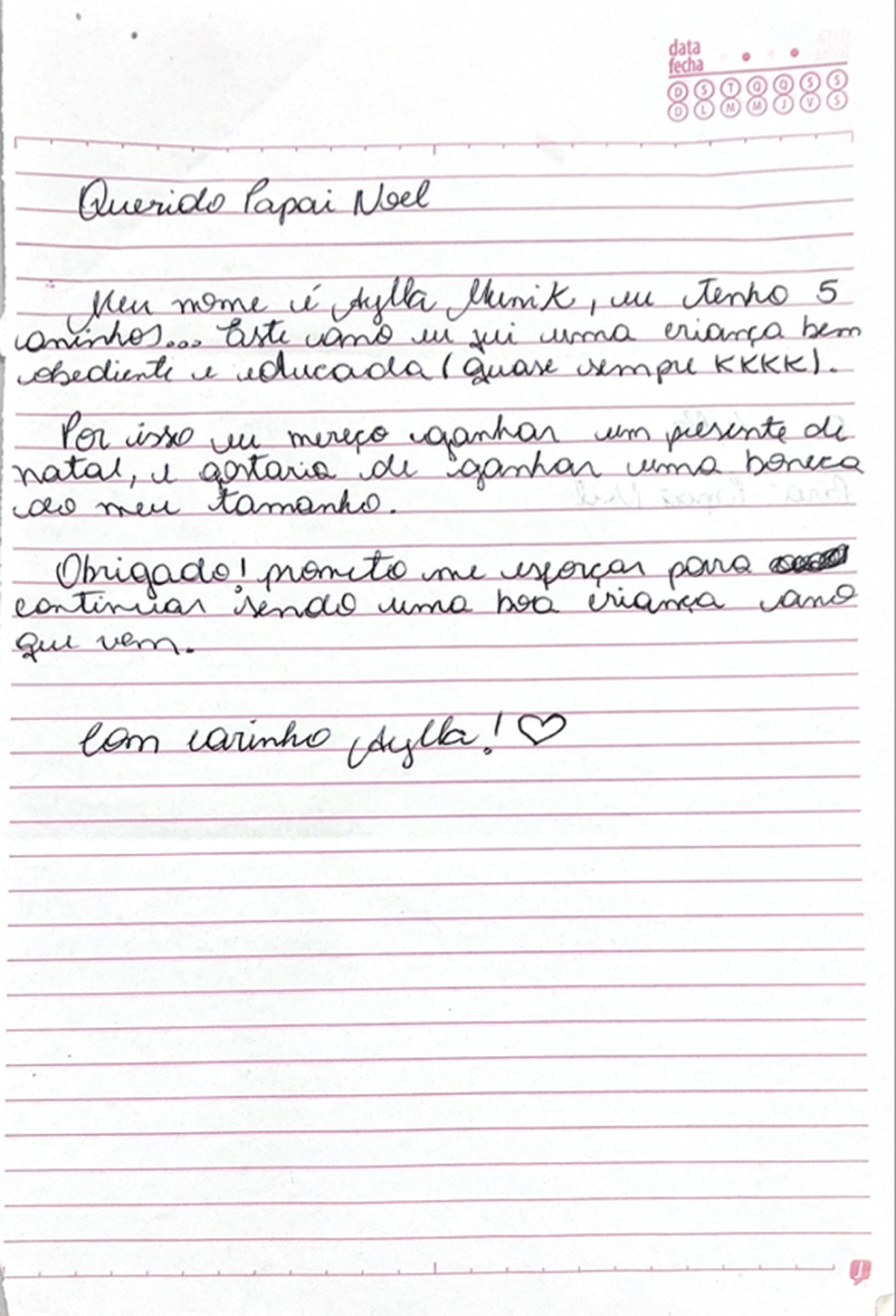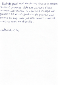 Confira as cartinhas das crianças. Sua doação Pix irá ajudar a tornar esses pedidos em realidade